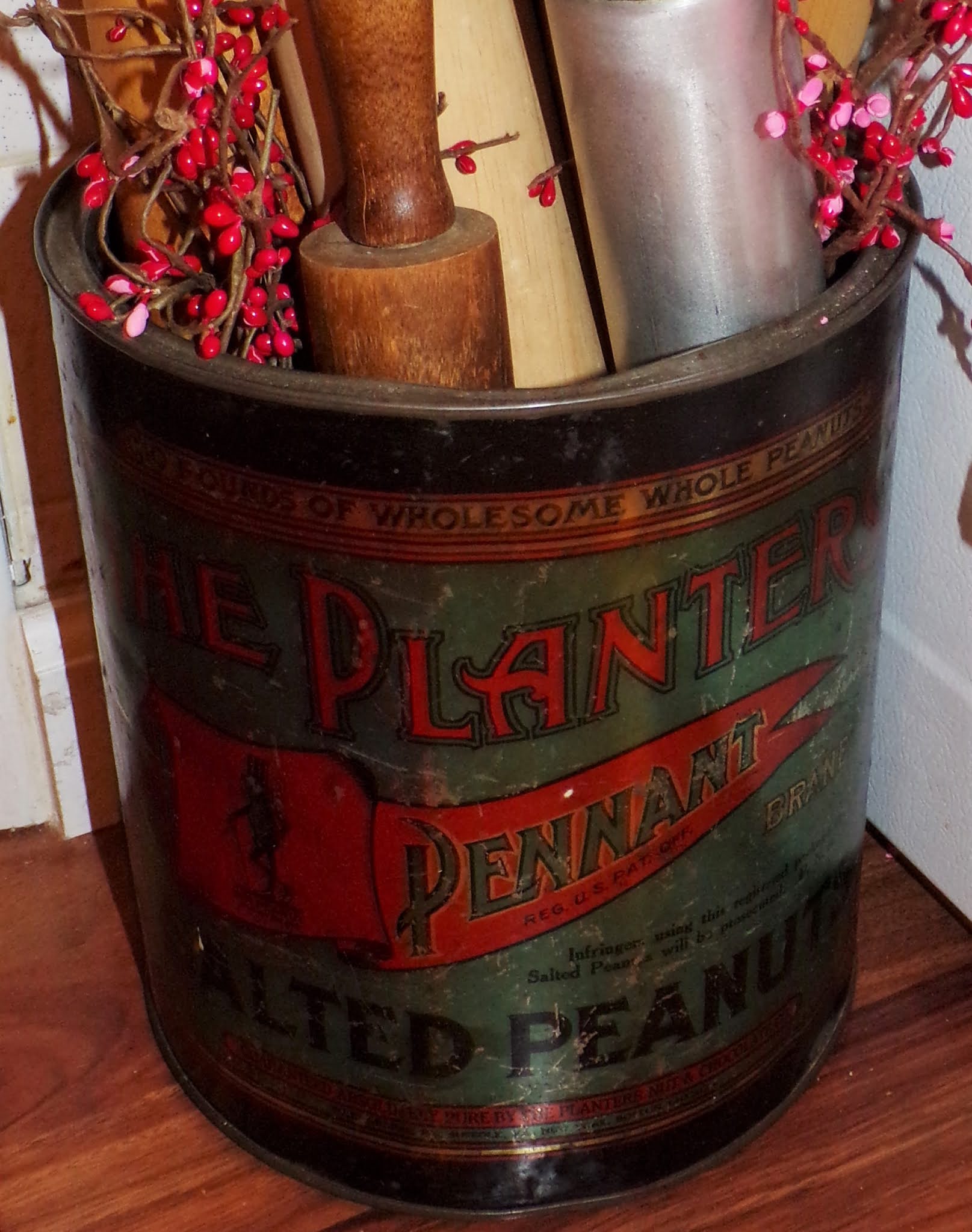 This Planters Peanuts container was what my Mother stored her grinder in......