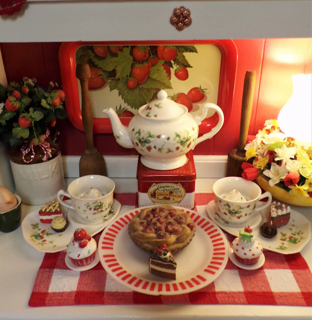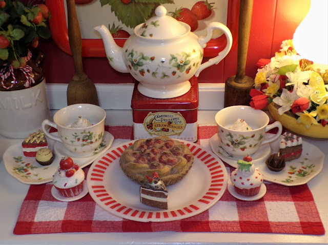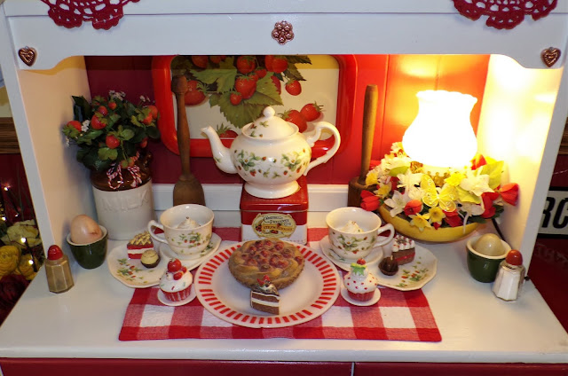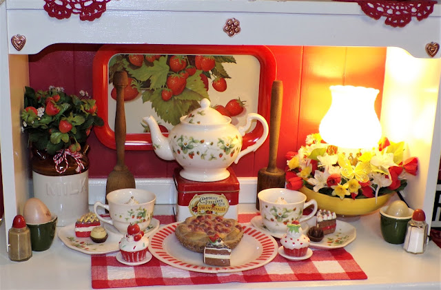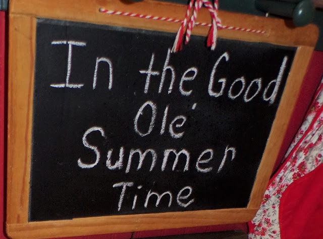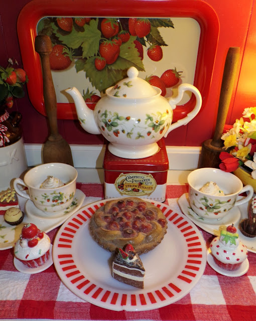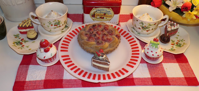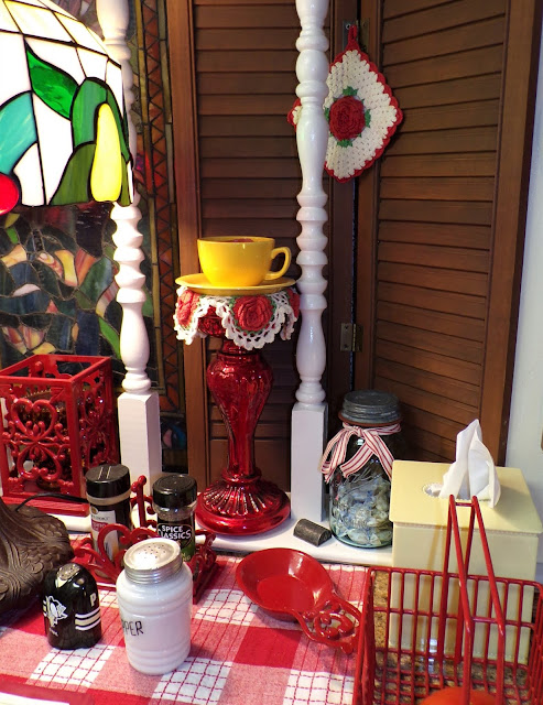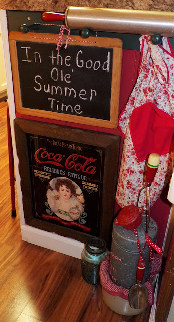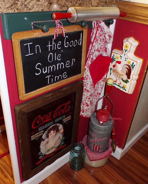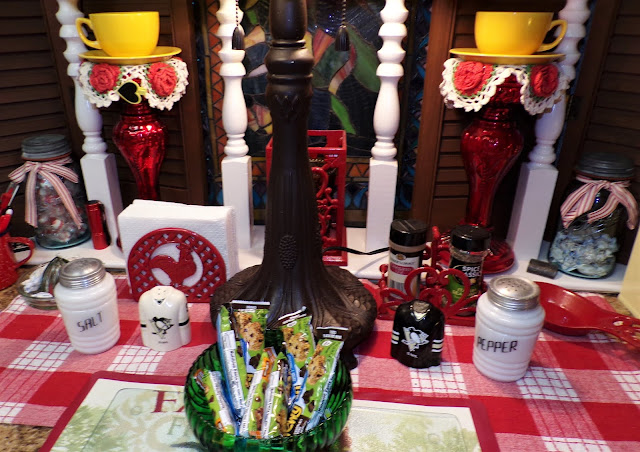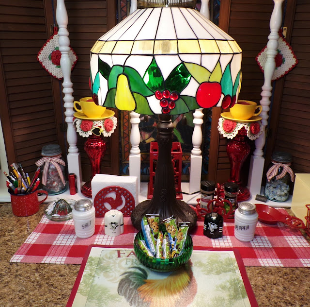 The red and white checked place mat is part of my theme for the Summer in the Kitchen because red and white checked linens remind me of Summer Picnic's......