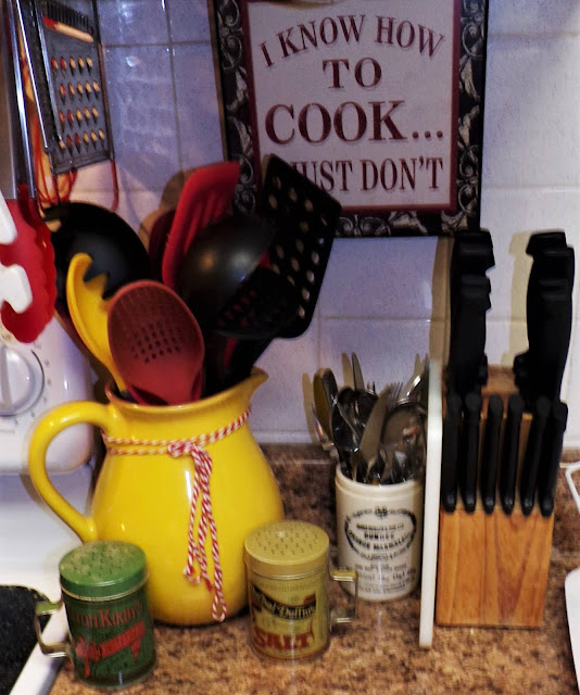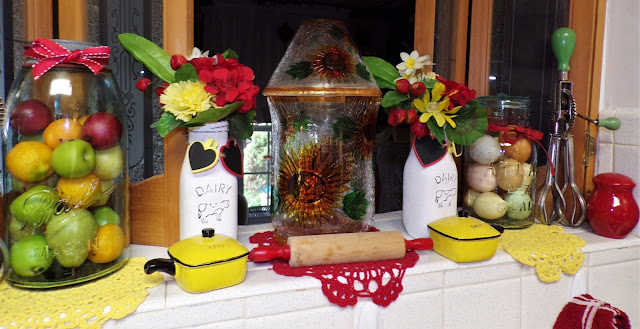 I decorate with things I love and with things that mean something to me, even in the Kitchen.......