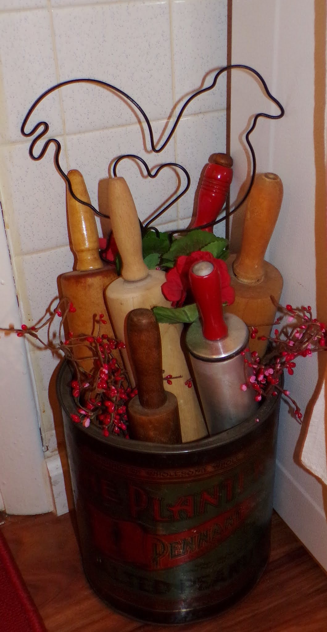 A Hen rug beater and my collection of rolling pins , both new and vintage......