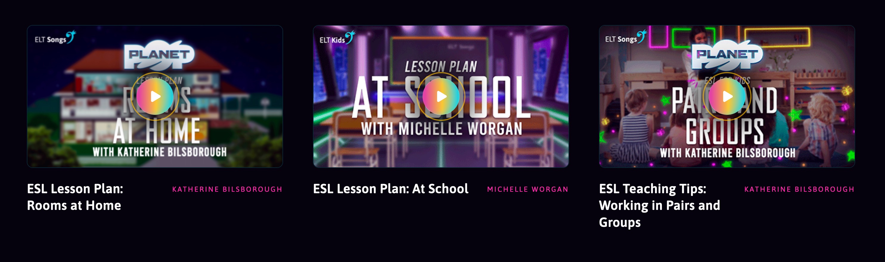 As well as the videos they provide teachers with downloadable lesson plans, worksheets, and flashcards. You can see a nice example here in the 'Downloads' section underneath the video panel: https://eltsongs.com/unit/planet-pop-unit-7/