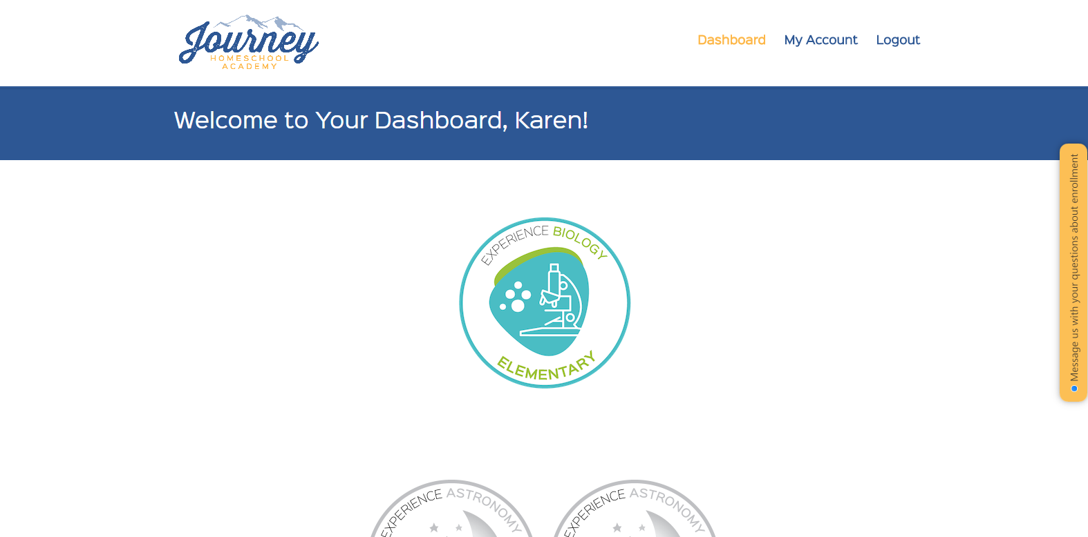 When I first log into the program, I come to my dashboard.
