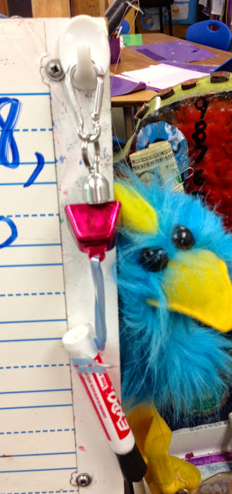 You just tie a square bell to a dry erase marker. (The square bells work better than the round ones because the round ones tend to swirl the clapper around in silence.) Then, each time you want your students to really listen and watch what you are writing on the board, you use the marker with the bell. You don't have to say a word! They hear the bell and they know that whatever you are about to write is super important.
